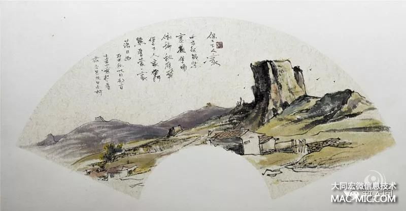 堡下人家 國(guó)畫寫意 扇面