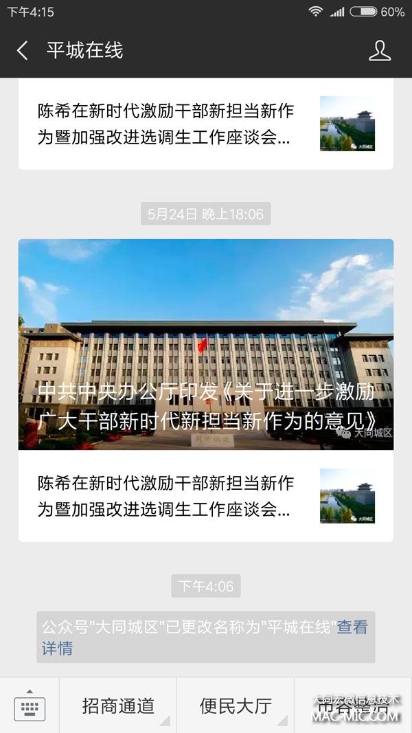 “大同城區(qū)”微信公眾平臺更名為“平城在線”