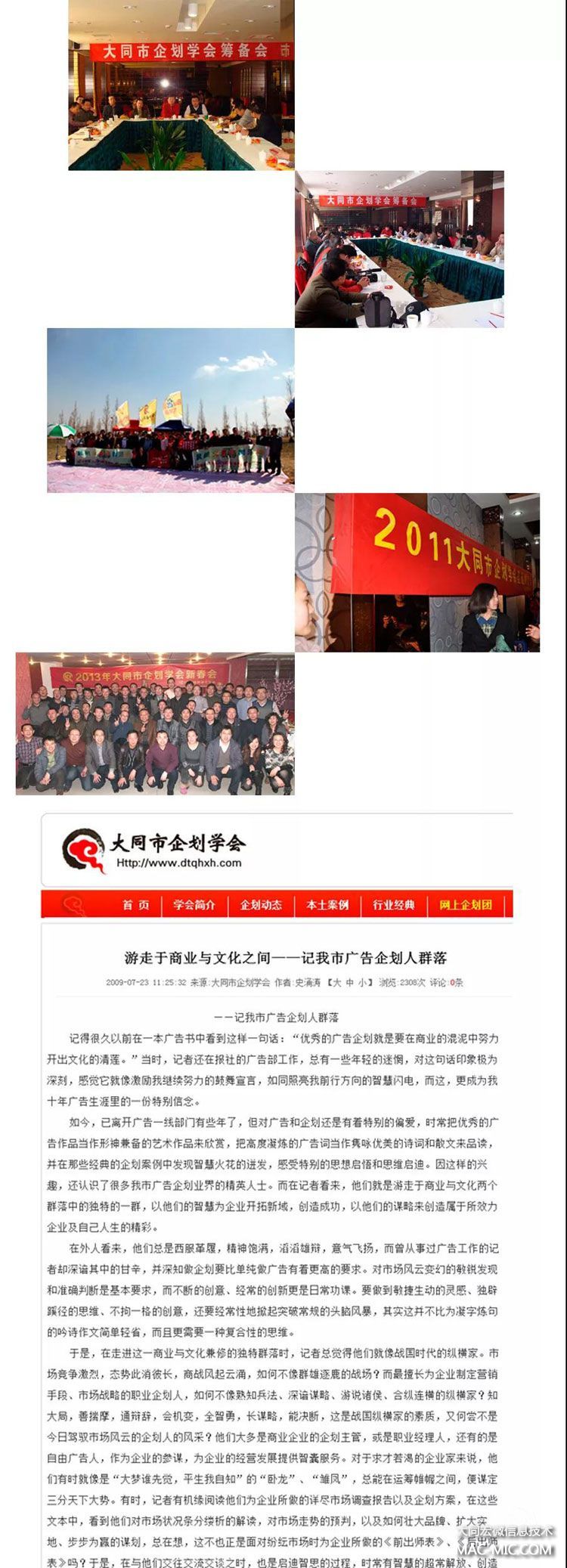 本人是企劃學會成立的倡導者,這一點讓我非常自豪。從1991年大學畢業(yè)至2001年,整整十年的時間,我在《大同日報》廣告部從事文案工作,那個時代市場經(jīng)濟風云迭起,潮漲潮落,我始終認為所有的經(jīng)歷都是財富,十年的廣告工作經(jīng)歷有很多收獲,但我認為最大的收獲是結識了一大幫有才華、有思想、有干勁的企劃人。他們多是各大企業(yè)特別是民營企業(yè)的企劃經(jīng)理,參與企業(yè)的創(chuàng)業(yè)、發(fā)展以及廣告營銷、市場推廣等,不斷的創(chuàng)新、大膽的創(chuàng)意是他們身上最鮮明的特質,我與他們志同道合,交流密切,有的引為至友,并在以后的日子里,與他們中間的許多人在各個領域中有多次合作,讓我受益非淺。
