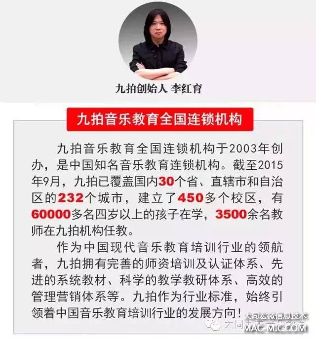 九拍教育科技集團由李紅育老師于2003年創(chuàng)建,2015年九拍音樂教育全國連鎖強勢進駐大同,總部設立在天津市南開學府創(chuàng)新園區(qū)。2006年,注冊成立了天津市九拍文化藝術發(fā)展有限公司,主要業(yè)務為音樂教育培訓、樂器產品銷售及文化交流活動。