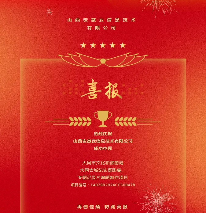 山西宏微云信息技術有限公司成功中標大同市文化和旅游局大同古城紀實攝影集、專題記錄片編輯制作項目