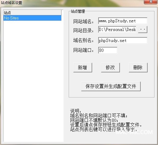 7、設(shè)置我們的站點信息,新增并保存設(shè)置并生成配置文件