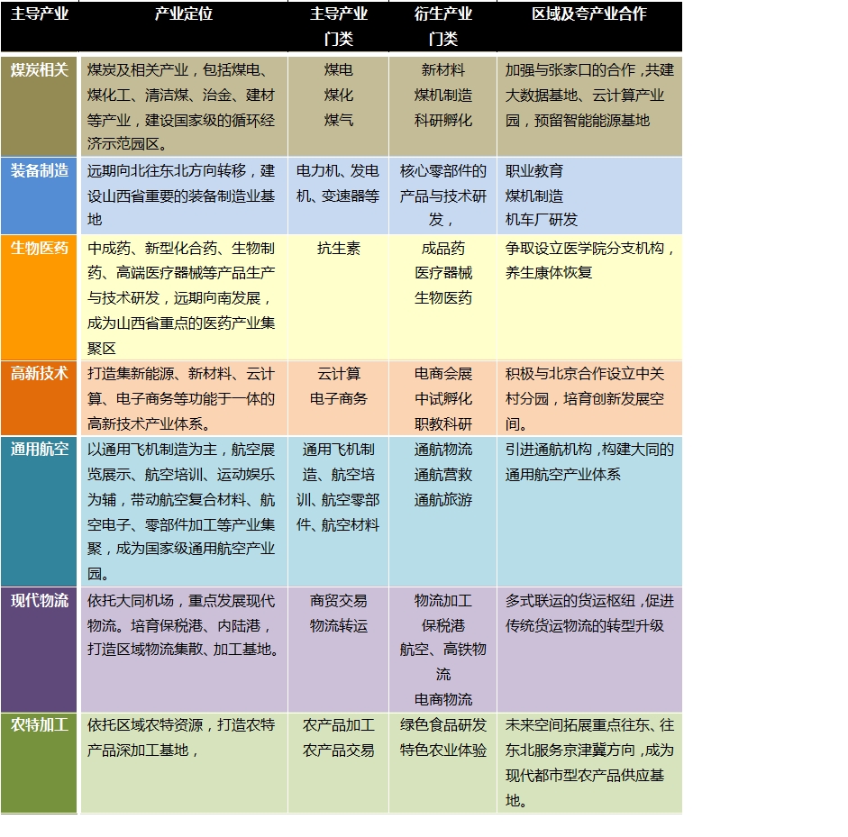 根據(jù)本次規(guī)劃的產(chǎn)業(yè)專題報(bào)告的相關(guān)分析,結(jié)合大同市“十三五”規(guī)劃確定了大同市的七大主導(dǎo)產(chǎn)業(yè),包括: